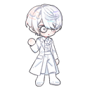 나이 10세 외모 나이는 10세이지만 겉으로 보기에는 20세 정도이다. 170센치에 마르고 탄탄한 체형. 오른쪽 눈을 가리는 단발의 머리카락. 흰색 머리카락과 눈에 휘광이 뛰어난 보석을 닮은 무지갯빛이 감돈다. 어딘지 모르게 맹한 인상이다. 왼쪽 눈에 은제 모노클을 쓰고 있다. 순백의 가운을 입었다. 아폴로 교단의 성표가 달린 은제 팔찌를 하고 있다. 과거...